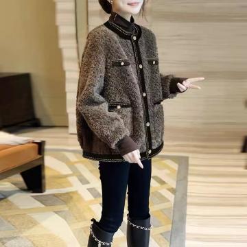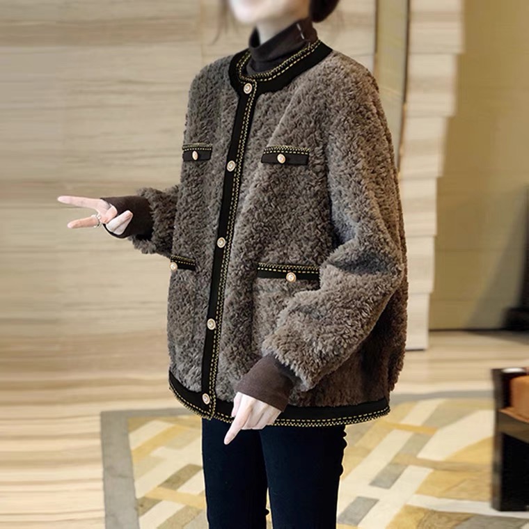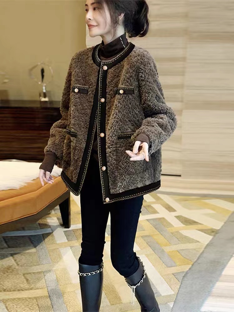 FA51500# 棕色毛绒短外套女时尚小香风减龄洋气质上衣秋冬新款欧洲站 服裝批發女裝批發服飾貨源
