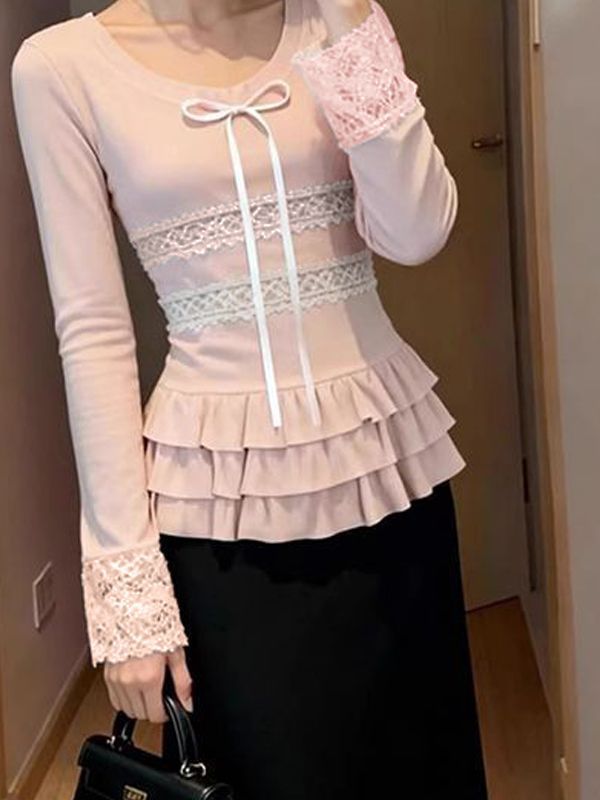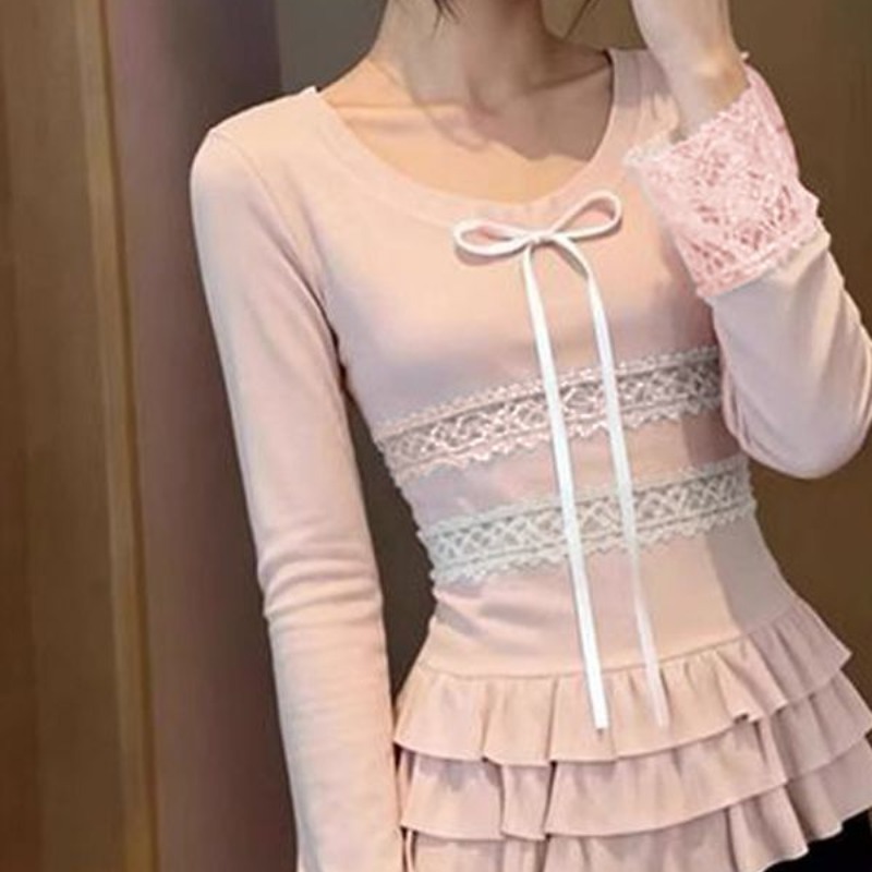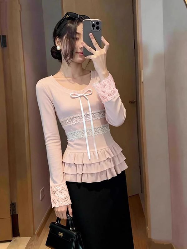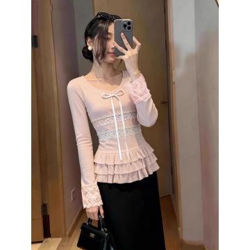FA51605# 原版羊绒坑条别致漂亮小众设计感蝴蝶结上衣 服裝批發女裝批發服飾貨源
