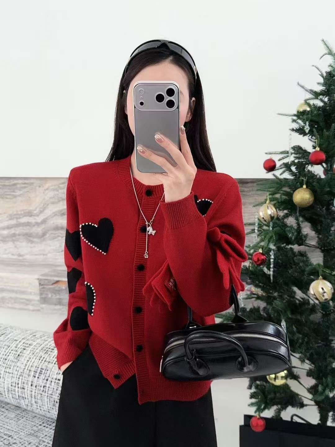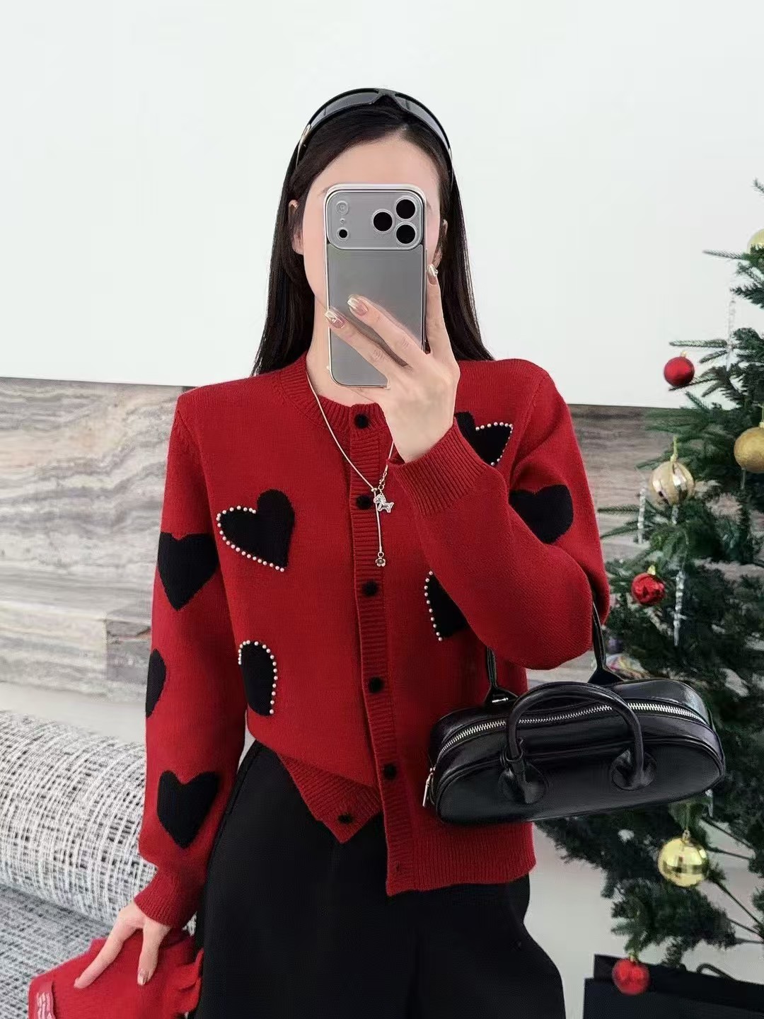 FA51682# 欧货重磅冬季新款爱心提花针织开衫高级感穿搭漂亮上衣女装 服裝批發女裝批發服飾貨源